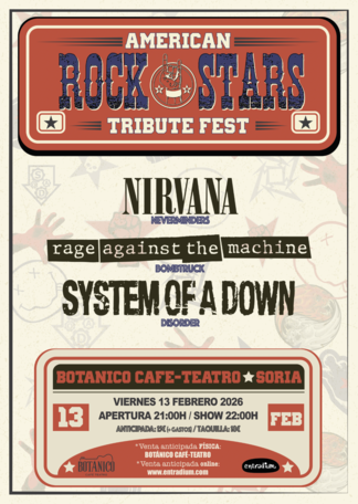 Festival de Tributos AMERICAN ROCK STARS Fecha y hora: febrero 13 @ 21:00 "American Rock Punk" regresa renovado en su nueva temporada en forma de “AMERICAN ROCK STARS”. El festival de tributos más rompedor que ya ha petado las mejores salas de todo el país reviviendo los temazos de las grandes bandas de la historia […]